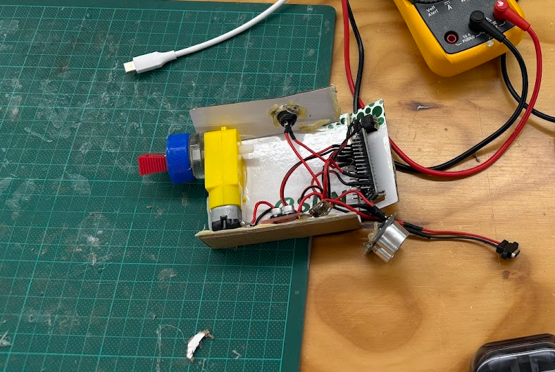 Throughout this process I made sure to continue using the multimeter (the tool I used in week 8) to ensure that all the wires and connections are receiving current throughout the circuit. This was really my pitfall in my past iterations through not testing that everything stayed connected as I began to move things around during the physical making. I would follow this up with an electrical test with power heading into the system ensuring the components all received the correct commands from the Arduino.