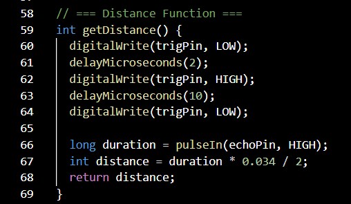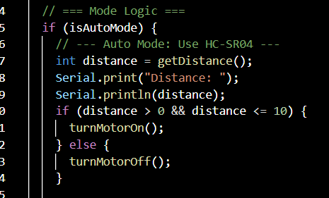 I realised now I needed to start coding each function of each input as its own variable before inputting that variable into the code loop. For example below is my code for the motion sensor to get the distance away an object is. Next to that you see this variable "getDistance" in the loop, asking the motor to turn on if something is close. Understanding how this worked was a huge step in my coding knowledge I felt, and a great stepping stone from my previous single input circuit.